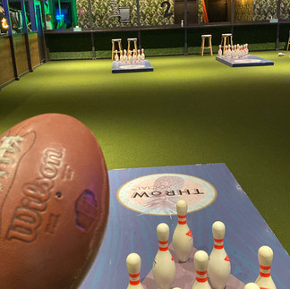 I loved the vibe of the place, very colorful and lit up, it gave very much of a beach feel. Along with the football bowling they have shuffleboard, corn hole, board games, live music, and cabanas you can reserve for parties. There weren't a lot of people there so we were able to play shortly after we arrived.